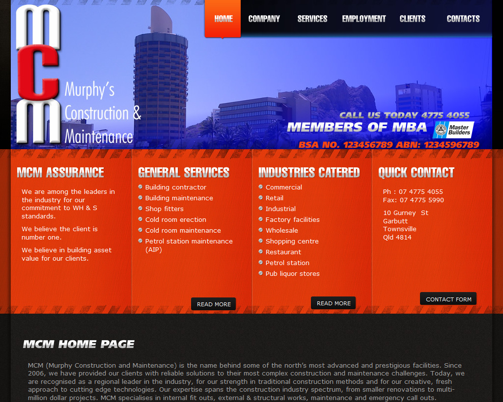 MCM (Murphy Construction and Maintenance) is the name behind some of the north’s most advanced and prestigious facilities. Since 2006, we have provided our clients with reliable solutions to their most complex construction and maintenance challenges. Today, we are recognised as a regional leader in the industry, for our strength in traditional construction methods and for our creative, fresh approach to cutting edge technologies. Our expertise spans the construction industry spectrum, from smaller renovations to multi-million dollar projects. MCM specialises in internal fit outs, external & structural works, maintenance and emergency call outs.
